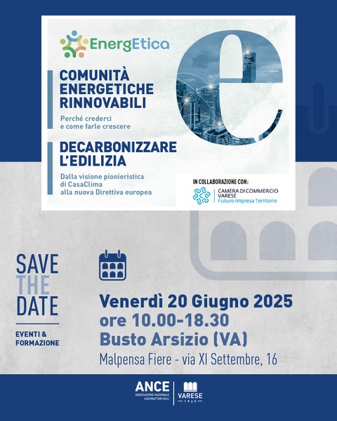 EnergEtica 2025 è un viaggio tra idee, strumenti e protagonisti del cambiamento. ANCE Varese è al fianco delle imprese edili per trasformare la responsabilità energetica in opportunità di crescita territoriale: un’occasione concreta per confrontarsi e costruire insieme l’edilizia sostenibile di domani.